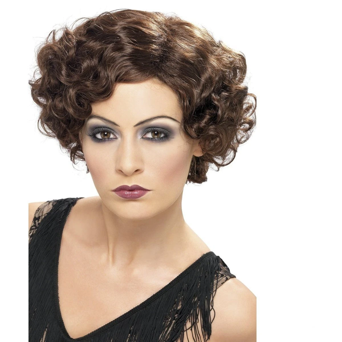 Brown curly flapper wig