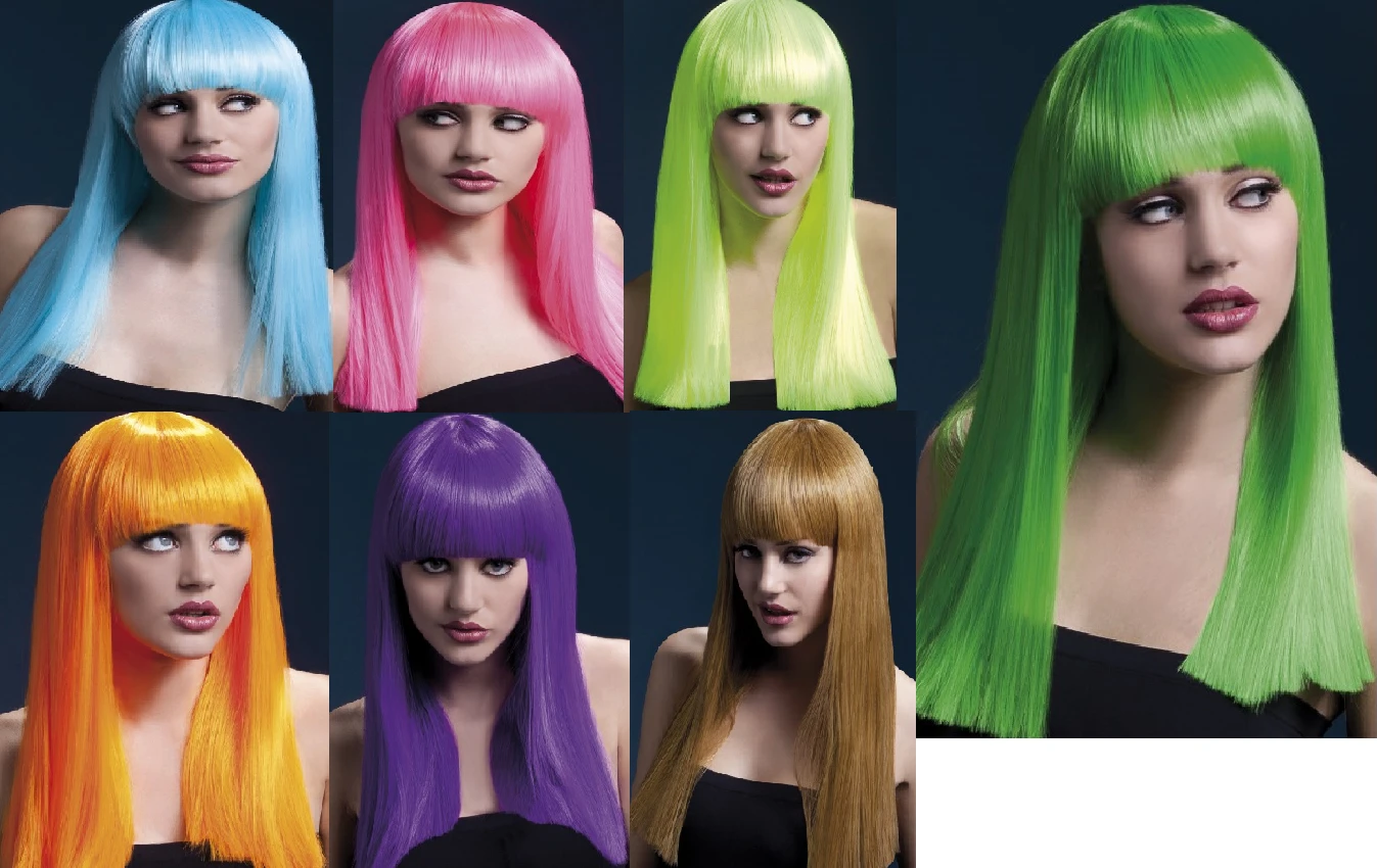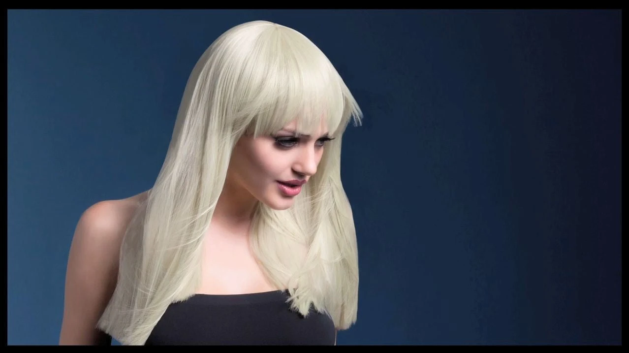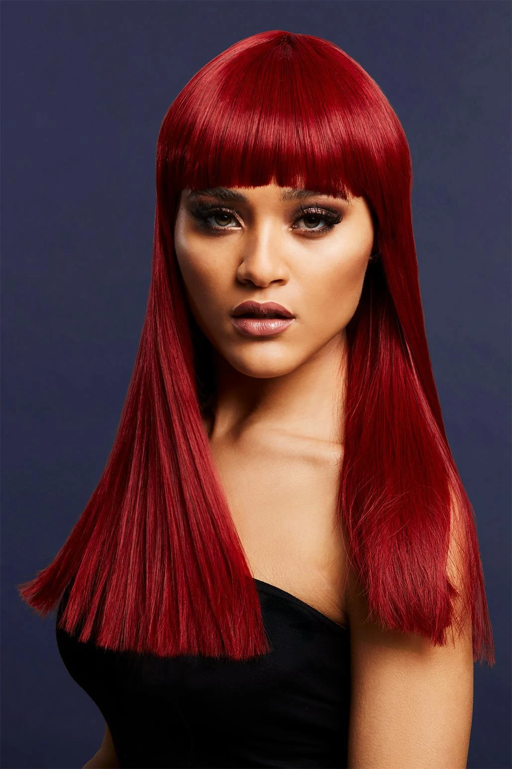 This long blunt cut wig features a fringe and measures 48cm long