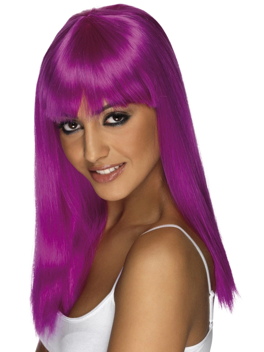 Long purple fringed wig
