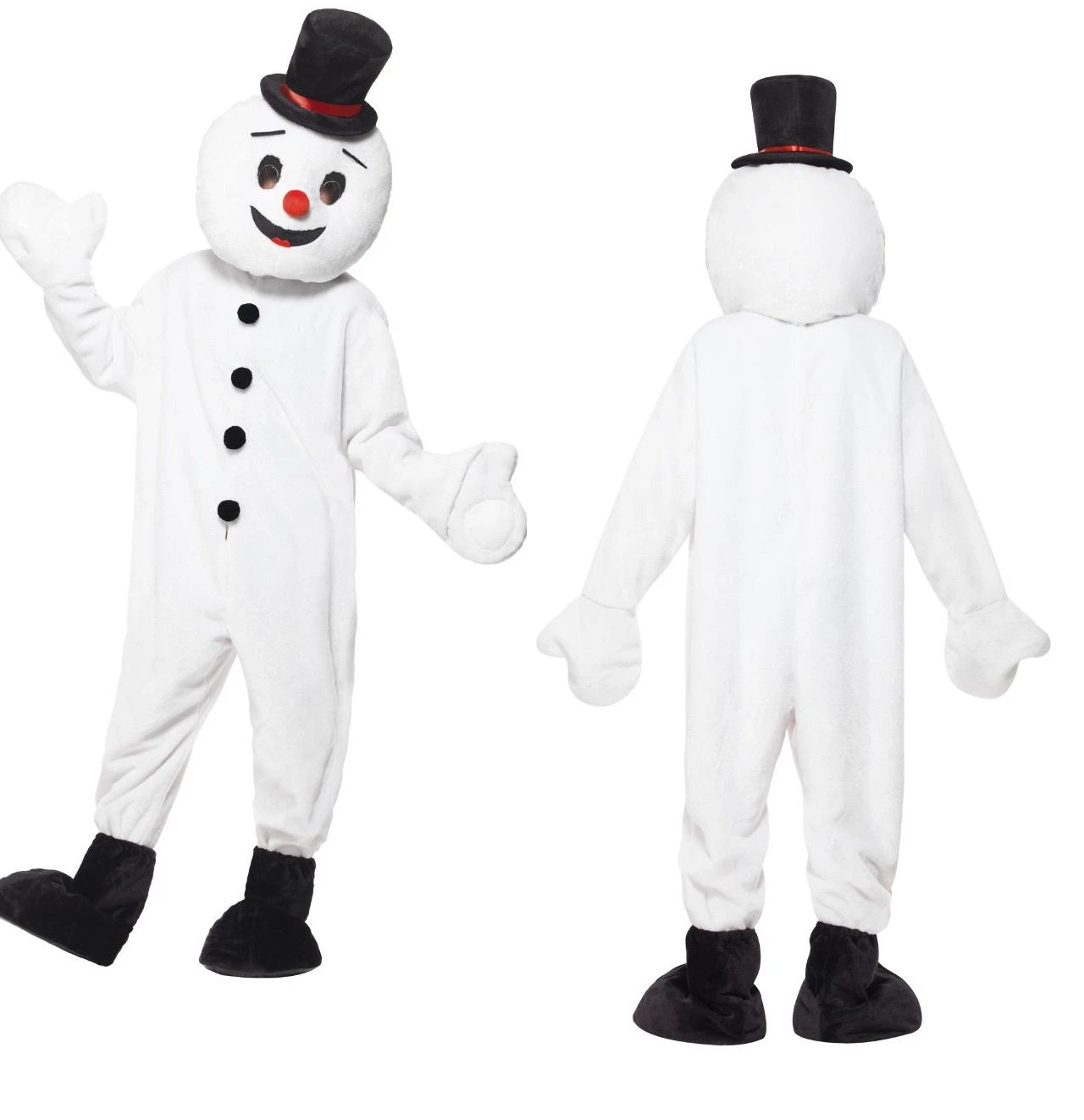 Snowman Mascot Costume, White, with Large Head, Bodysuit, Hat & Bootcovers